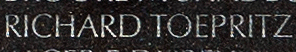 Engraved name on The Wall of Hospitalman Glenn Truman Bristow, U.S. Navy  Engraved name on The Wall of Second Lieutenant Richard Karl Bruno Toepritz, U.S. Marine Corps