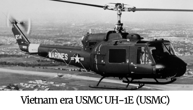 Photo of a Vietnam era USMC UH-1E. (USMC)SUMMARY: At dusk on April 5, 1967, a Marine UH-1E “Huey” gunship (tail number 151852) from Marine Observation Squadron 6 (VMO-6), Marine Aircraft Group 36 (MAG-36), based out of Chu Lai, volunteered for an emergency medevac mission just southeast of Duc Pho near the southern coast of Quang Ngai Province in I Corps. An American Marine from G Company, 2d Battalion, 7th Marines (G/2/7), which was at the time under temporary operational control of the 3d Battalion, 7th Marines during Operation DESOTO, set off a booby-trap which wounded him seriously enough to require immediate medevac. As the gunship was hovering over the pick-up spot, and four Marines were loading their companion aboard, a massive command-detonated bomb exploded under the helicopter, which disappeared in a cloud of smoke and twisted metal. The four aircraft crew, a passenger aboard, the medevac patient, and his four Marine buddies were killed instantly. Two more Marines were killed as they raced to the scene when a second command-detonated bomb exploded in their midst.