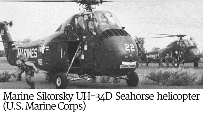 Grumman OV-1 MohawkThe following day, two Marine UH-34Ds from HMM-162, Marine Air Group 16 (MAG-16), 1st Marine Air Wing