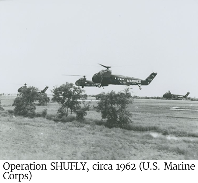 operation shuflyThe first Marine helicopter squadron sent to Vietnam as part of this new Task Unit 79.3.5 codenamed Operation SHUFLY, began operating in mid-April 1962. Those Marine aircrews improved aerial reconnaissance, tactical mobility, assault support and offensive air support to the Army of the Republic of Vietnam (ARVN) in III Corps. By March 1963, SHUFLY operations had moved to Da Nang in I Corps, and were hampered by the monsoon season. The majority of the