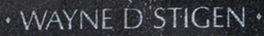 stigen's name engraved in the Wall