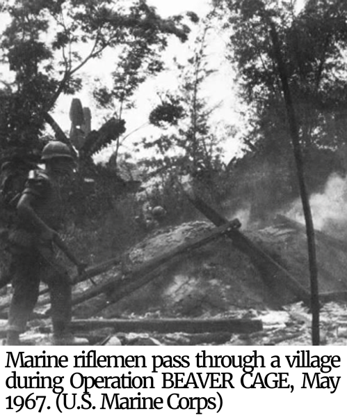 Marine riflemen during Operation BEAVER CAGE.Early on, the Viet Cong and North Vietnamese Army dominated the Que Son region outside the few major towns in the area. Venturing outside