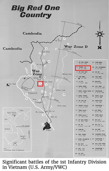 Map of significant battles of the 1st Infantry Division in Vietnam. (U.S. Army/VWC)