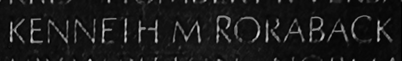 Master Sergeant Kenneth Mills Roraback's name inscribed on The Wall.