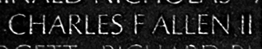 Allen’s wife, Mrs. Donna Patricia Allen, was informed by telegram that her husband had died in a plane crash during combat, having “made a strafing pass from which his aircraft failed to pull out of the run." She later commented that her husband “felt that any man in uniform should realize that this might come about, and he was willing to do his part. He did feel strongly about this.” He died a hero, leaving behind his wife and two young sons. Allen is memorialized on panel 2E, line 105 of the Vietnam Veterans Memorial in Washington, D.C.1