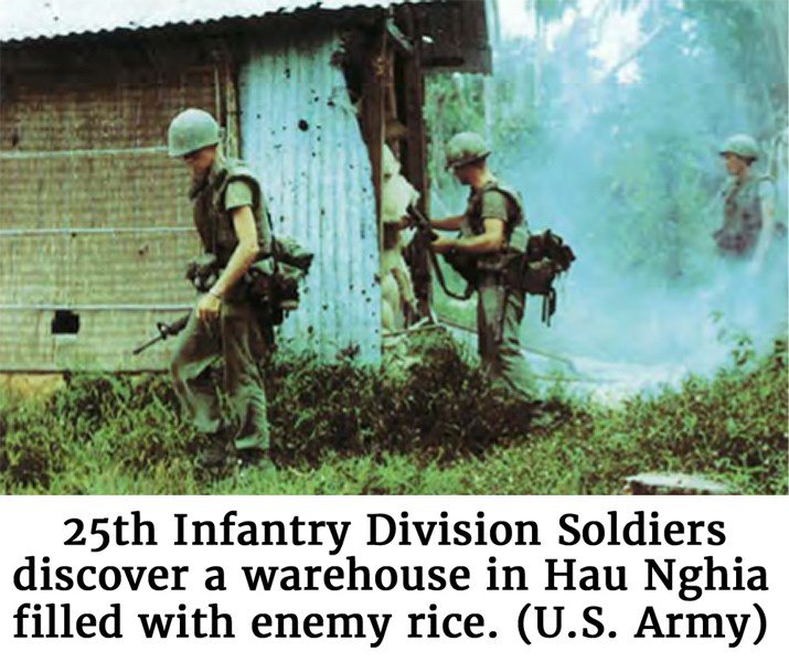 Photo provided by the U.S. Army of 25th Infantry Division Soldiers as they discover a warehouse in Hau Nghia filled with enemy rice.FULL STORY: On September 2, 1966, the 25th Infantry Division, headquartered at