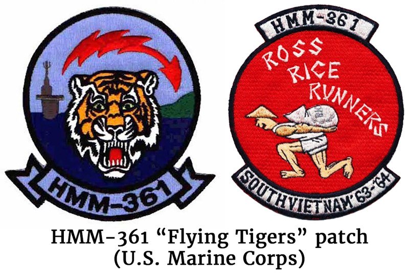 HMM-361 “Flying Tigers” patch (U.S. Marine Corps)On October 2, 1963, HMM-361 took over as the U.S. Marines’ Operation SHUFLY squadron, providing all helicopter combat support in I Corps out of Da Nang Air Base. HMM-361 assumed responsibility following “a short period of orientation flying with the crews of the departing unit (HMM-261).” Less than a week later, the unit lost two helicopters and 12 men killed in action.