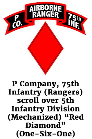 P Company, 75th Infantry (Rangers) scroll over 5th Infantry Division (Mechanized) “Red Diamond” (One-Six-One)These are the Soldiers of Ranger Team 1-8, P Company, 75th Infantry (Rangers) who died in the crash: