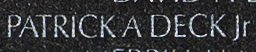 • First Lieutenant Patrick A. Deck, Jr., Company A, 502d Aviation Battalion, 12th Aviation Group, 1st Aviation Brigade, rotary wing aviation unit commander and helicopter pilot, was born March 01, 1941 in Chevy Chase, Maryland. He died of his wounds February 02, 1977 at the age of 35.