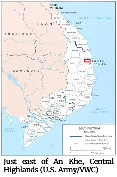 Map showing just east of An Khe, Central Highlands provided by the U.S. Army/VWC.)