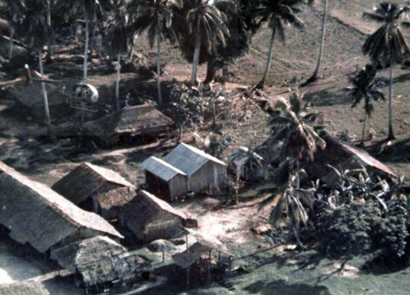 An OH-6 “Loach” flies low over a village searching for Viet Cong forces, unknown date. (National Archives)
