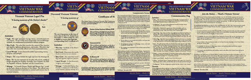 All materials below are provided free of charge to Commemorative Partners for presentation purposes at events. To order these materials, please login to the Partner Portal, and fill out a DD Form 2956 Event Support Request.