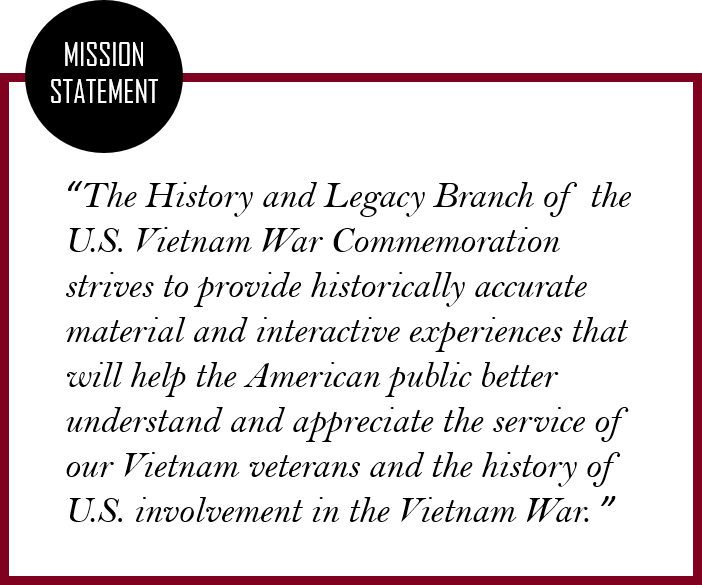 This section of the website helps viewers recognize and reflect upon the U.S. veterans’ experience, without debating the rightness or wrongness of the war. Instead, the features here offer a more personal engagement with veterans’ stories and provide some historical foundation to better understand their experiences.