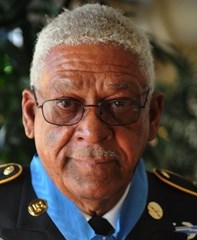 Staff Sergeant Melvin Morris distinguished himself by acts of gallantry and intrepidity above and beyond the call of duty while serving as Commander of a Strike Force drawn from Company D, 5th Special Forces Group (Airborne), 1st Special Forces, during combat operations against an armed enemy in the vicinity of Chi Lang, Republic of Vietnam on September 17, 1969. On that afternoon, Staff Sergeant Morris’ affiliated companies encountered an extensive enemy mine field and were subsequently engaged by a hostile force. Staff Sergeant Morris learned by radio that a fellow team commander had been killed near an enemy bunker and he immediately reorganized his men into an effective assault posture before advancing forward and splitting off with two men to recover the team commander’s body. Observing the maneuver, the hostile force concentrated its fire on Staff Sergeant Morris’ three-man element and successfully wounded both men accompanying him. After assisting the two wounded men back to his forces’ lines, Staff Sergeant Morris charged forward into withering enemy fire with only his men’s suppressive fire as cover. While enemy machine gun emplacements continuously directed strafing fusillades against him, Staff Sergeant Morris destroyed the positions with hand grenades and continued his assault, ultimately eliminating four bunkers. Upon reaching the bunker nearest the fallen team commander, Staff Sergeant Morris repulsed the enemy, retrieved his comrade and began the arduous trek back to friendly lines. He was wounded three times as he struggled forward, but ultimately succeeded in returning his fallen comrade to a friendly position. Staff Sergeant Morris’ extraordinary heroism and selflessness above and beyond the call of duty are in keeping with the highest traditions of military service and reflect great credit upon himself, his unit, and the United States Army.