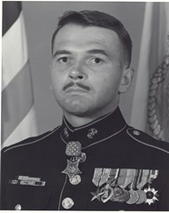 For conspicuous gallantry and intrepidity at the risk of his life above and beyond the call of duty while serving as a platoon sergeant with Company G, in connection with combat operations against the enemy on the night of 11 March 1970. Under the leadership of Gunnery Sergeant Kellogg, a small unit from Company G was evacuating a fallen comrade when the unit came under a heavy volume of small-arms and automatic-weapons fire from a numerically superior enemy force occupying well-concealed emplacements in the surrounding jungle. During the ensuing fierce engagement, an enemy soldier managed to maneuver through the dense foliage to a position near the marines, and hurled a hand grenade into their midst which glanced off the chest of GySgt. Kellogg. Quick to act, he forced the grenade into the mud in which he was standing, threw himself over the lethal weapon and absorbed the full effects of its detonation with his body, thereby preventing serious injury or possible death to several of his fellow marines. Although suffering multiple injuries to his chest and his right shoulder and arm, GySgt. Kellogg resolutely continued to direct the efforts of his men until all were able to maneuver to the relative safety of the company perimeter. By his heroic and decisive action in risking his life to save the lives of his comrades, GySgt. Kellogg reflected the highest credit upon himself and upheld the finest traditions of the Marine Corps and the U.S. Naval Service.