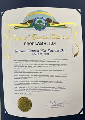 Honorary Partner ceremony for CA VVA Chapter 526 Vietnam veterans by members of the CA Santa Monica Chapter NSDAR.