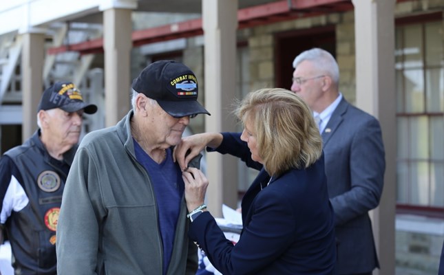 U.S. Representative Claudia Tenney (NY-24) pins a Vietnam veteran.