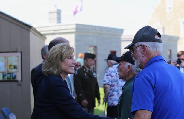 U.S. Representative Claudia Tenney speaks with a Vietnam veteran.