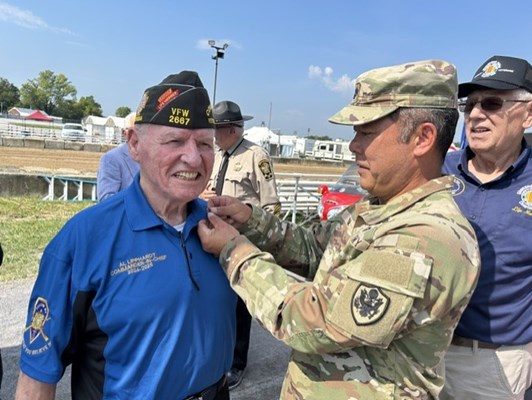 VFW National Commander Al Lipphardt is pinned by VWC's Col. Tom.