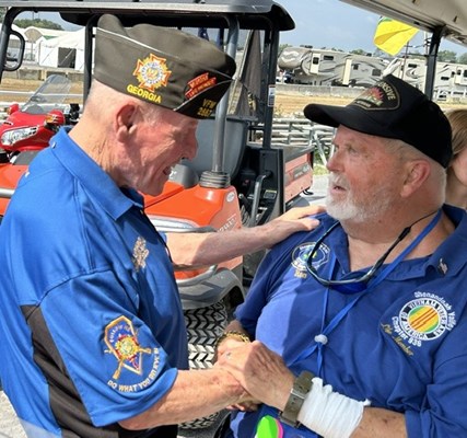 VFW National Commander Al Lipphardt poses for a photo with a Vietnam veteran.