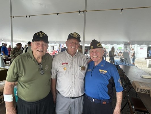 Two veterans pose with VFW Nat'l. Commander Al Lipphard.