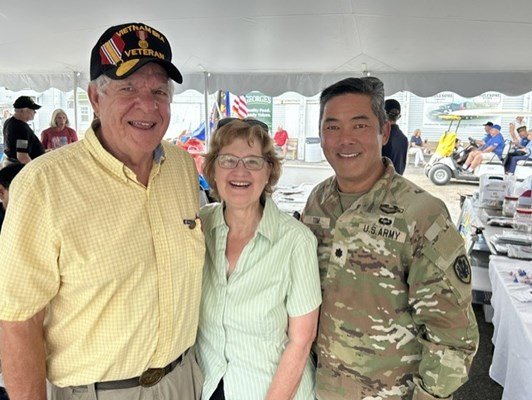 Col. Tom (right) poses for a photo with a Vietnam veteran and his wife.