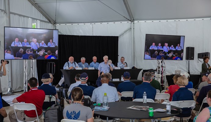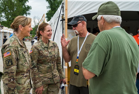 National Guard Bureau Chief, Gen. Daniel R. Hokanson (at right) greets members of the North Carolina Helicopter Pilots Association.