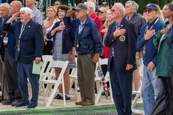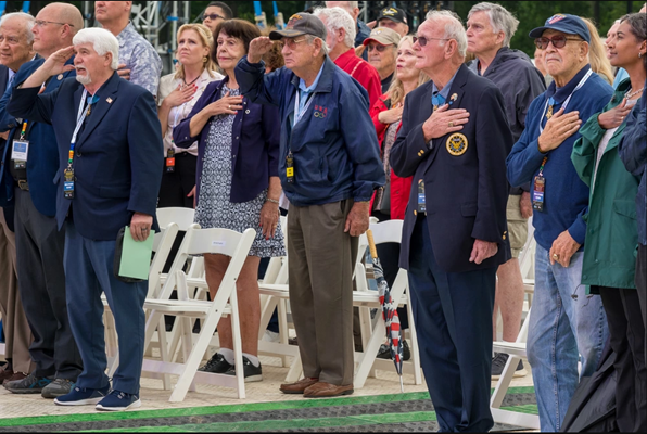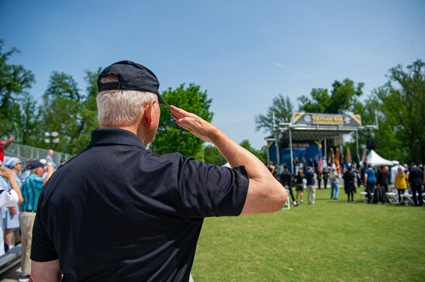 Attendee salutes during the Welcome Home Opening Ceremony.