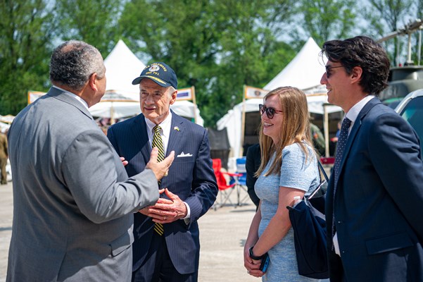 Secretary of the Navy Carlos Del Toro converses with U.S. Senator Tom Carper (DE) and others.