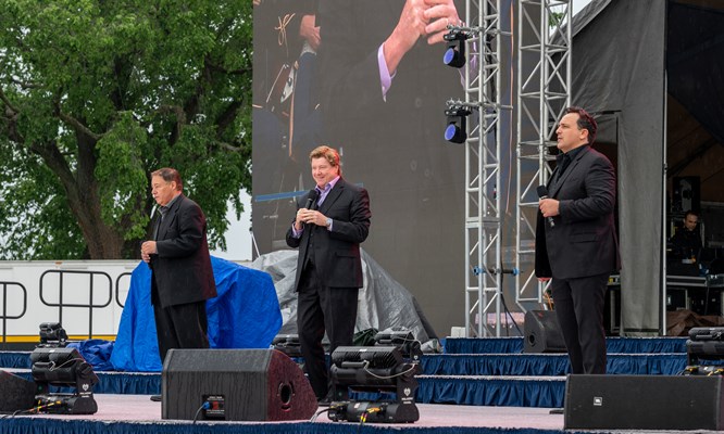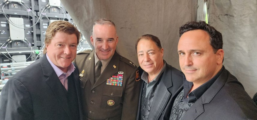 The New York Tenors' Andy Cooney, Daniel Rodriguez and Christopher Macchio with VWC Dir. U.S. Army Maj. Gen. Edward J. Chrystal, Jr.