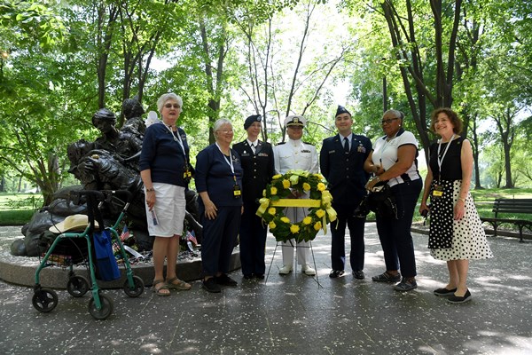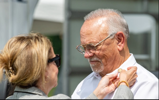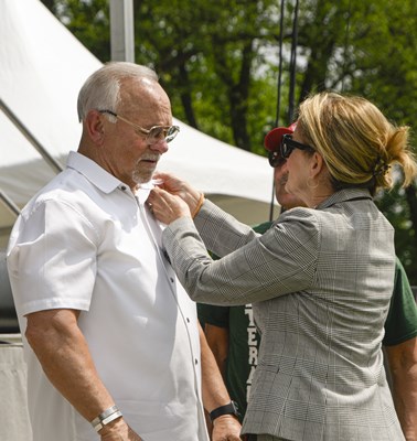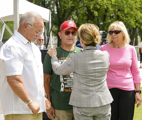 U.S. Representative Madeleine Dean (PA-4) presents a Vietnam Veteran Lapel Pin during the Welcome Home Opening Ceremony.
