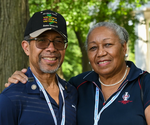 Vietnam War Medal of Honor Recipient Melvin Morris and wife Mary seated among guests at the Opening Ceremony.