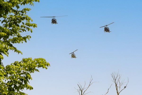 Vietnam War Period Huey Flyover During Opening Ceremony.