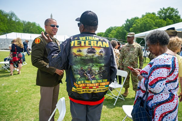 Medal of Honor recipient (at left) Brian M. Thacker and Vietnam Veterans Memorial Fund founder Jan Scruggs (middle).