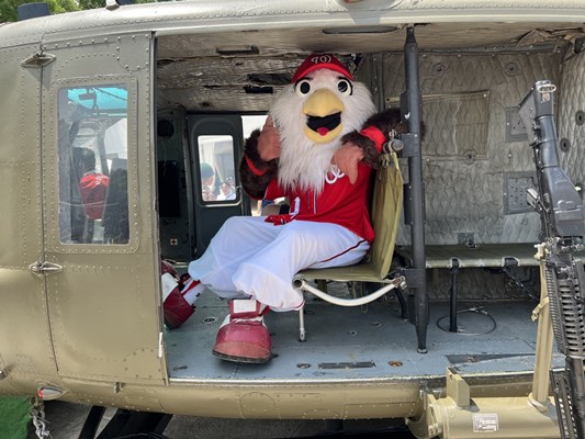 Washington Nationals Mascot Screech in Static Huey Helicopter.